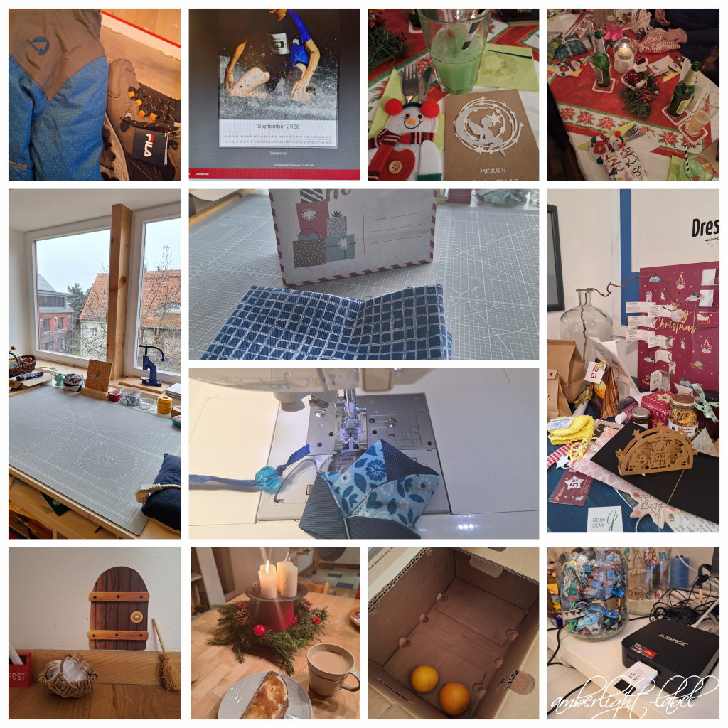 Nach der Homeoffice-Zeit mit einer Reduzierung des Mailgebirges von >900 auf <700 – was immer noch viel zu viel ist – verkabelte ich den chinesischer Mini PC* endlich richtig und kam so fast schon in den Aufräumflow und legte sogar die Schneidematte frei. Leider habe ich vergessen, dass ich an dem Tag eigentlich in der Mittagspause einen Online-Workshop gebucht hatte. Da die Mittagspause ausfiel, habe ich auch daran nicht mehr gedacht. Dafür entstand am Nachmittag noch ein Zusatz zum Wichtelgeschenk für das Abendtreffen mit den Dresdner Nähbloggern nach dieser Anleitung. Ein Stück Mailand-Stoff wurde außerdem gebügelt und verpackt. Der Postbote klingelte 2x und brachte neue Vinted-Käufe für die Kinder, wobei ich spontan beschloss, dass die feine Finkid-Jacke* doch der Weihnachtsmann überreicht. Kurz bevor ich zur Weihnachtsfeier der Nähblogger aufbrach, versuchte ich noch den Familienfotokalender fertigzustellen. Den Abend verbrachte ich ganz wunderbar entspannter Gesellschaft von friemeleien, aprikaner, clauchichi, dorooutoftheblue, schuhpeg , mitnadelundfaden, kremplinghaus, orneedd, resizegenadelt und ina_zkar im Immergrün, wobei die nähende strickende Runde nach dem Wichteln und gutes Essen mit dem Wirt über sein Kreuzstichbilder fachsimpelte. Nach der nächtlichen Fahrradtour, wobei auch mich eine bei Vinted für die Hälfte des Preises gekaufte gebrauchte Winterjacke von Elkline* wärmt, spielte ich noch schnell Wichtel und verwandelte die drei Minibilder in Pflaumentoffel-Basteltüten, bevor wir gemeinsam gegen 22:30 Uhr schlafen gingen. Das dritte Adventswochenende wartet mit einem Schulkonzert des Mittleren, Kerzen ziehen, Großelternbesuch und sogar Kinozeit mit dem Mann.