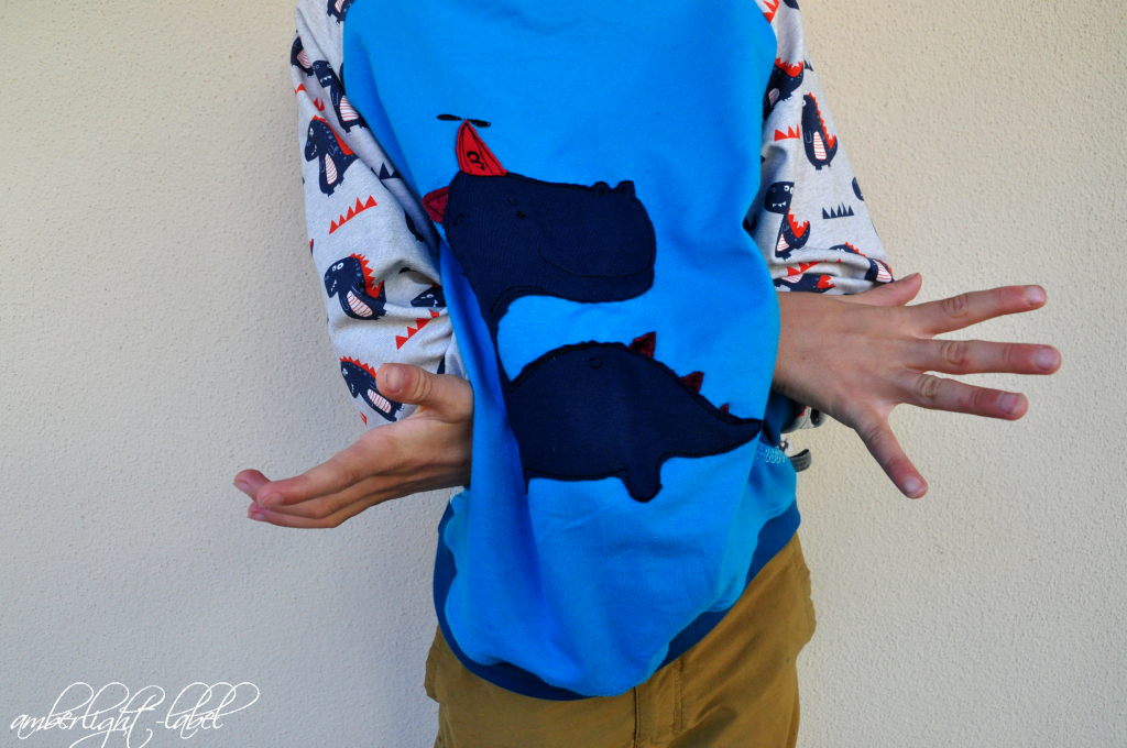 Erst beim Nähjahresrückblick letzte Woche ist mir aufgefallen, dass ich vergessen habe, das Geburtstagsshirt des Jüngsten hier zu zeigen, der auch auf jeden Fall noch einen Näh-Oscar verdient hat und daher dort noch nachgereicht werden soll. Bei den vielen Geburtstagsshirts, die ich bei bis dahin schon 35 Kindergeburtstagsfeiern (15+12+7) genäht habe, waren es in den meisten Fällen neue Schnittmuster. Beim achten Geburtstag des Jüngsten habe ich aber tatsächlich sowohl das Schnittmuster, wie auch die Stickdatei wiederholt.