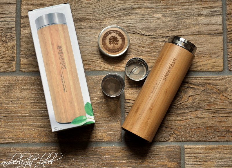 Das System des einsetzbaren zweiteiligen Edelstahlsiebes ist wieder identisch und ermöglicht damit die Verwendung von losem Tee. Klare Abstriche gibt es bei dieser Variante bei der Spülmaschinentauglichkeit, denn während bei der Glasvariante nur der Deckel nicht in den automatischen Abwasch kann, ist hier nur noch das innere Sieb spülmaschinenfest und man kommt durch den Bambus nicht um die Handwäsche herum. Außerdem hätte mir persönlich noch besser gefallen, wenn der Boden nicht aus Kunststoff sondern aus Bambus, Kork oder Edelstahl gewesen wäre. Dafür nimmt man die Flasche wirklich gern in die Hand, weil sich die glatte Bambusoberfläsche – mit dem eingravierten Hashtag #teafavs – richtig gut anfühlt.
