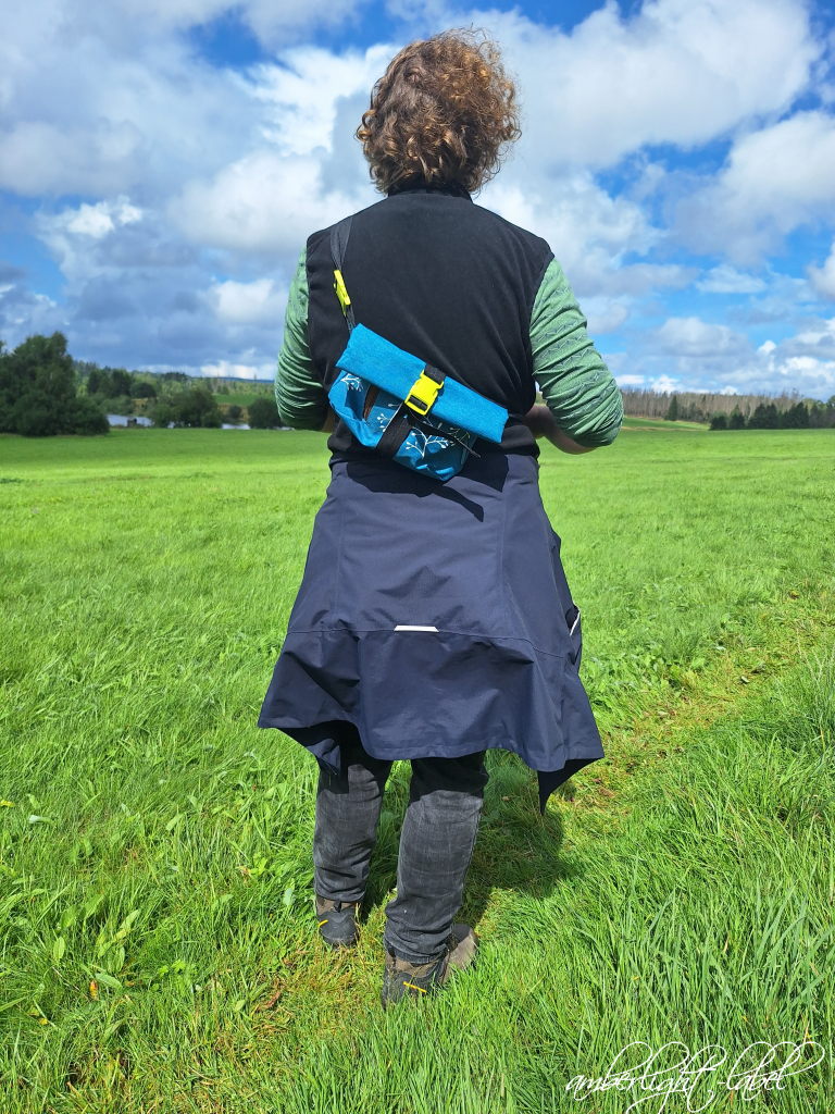 In der ersten Juni-Woche suchte Schnittbox nach Designnähern für ihr neues Taschenschnittmuster Hip Pack Miloq* mit dem Zeitplan, dass im Juni/Juli genäht werden sollte. Das fand ich – sehr spontan – eine sehr gute Idee. Von ihr habe ich vor über zehn Jahren schon Kleidungsschnitte genäht – wie hier und hier – und zuletzt wohl den Bikini für die Tochter. Eine Woche später bekam ich das Schnittmuster zugeschickt und dachte da noch, dass wir erst in der zweiten oder dritten Ferienwoche in den Sommerurlaub starten würden. Es hätte entspannt sein können …. Wer den Termindauerlauf vor der Abfahrt nur zwei Wochen später in den Sommerurlaub mitbekommen hat, ahnt, dass ich zur verständlichen Verwunderung meines Mannes zwar noch versucht habe, wie die meisten anderen Designnäher im Juni “zu liefern”, aber dann irgendwann dann doch dringend zum Geburtstagsshirt für den Mittleren wechseln musste und es nicht so zeitig wie die geschafft habe. Die Bauchtasche hat daher Österreich und Kroatien leider verpasst, aber durfte wenigstens in den Harz mitkommen. Fertig geworden bin ich erst Ende Juli.