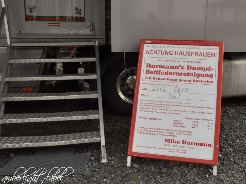 Die größte Erheiterung gab es für uns übrigens auf dem Rückweg vom Feld, denn dort fand sich ein “aus der Zeit gefallenes” Schild, das sich ausschließlich an Hausfrauen richtet. Mit einem Mann an meiner Seite, der mehr “Hausarbeit” übernimmt als ich und vielen gleichberechtigten Paaren im Freundeskreis sind solche Schilder glücklicherweise wohl wirklich schon längst überholt, oder?