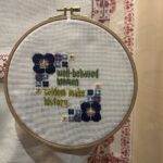 Für die (Ur)Oma (meiner Kinder) wurde es ein Stoffkörbchen mit geplottetem Namen mit Flockfolie und einer Blumenstrauß-tickdatei von Stoffcut* aus dem Adventskalender 2021. Leider ist mir der das mit eingestickte Schleifenbändchen des Blumenstraußes etwas zu tief gerutscht, da ich die Abnäher für den Boden nicht mit bedacht hatte.