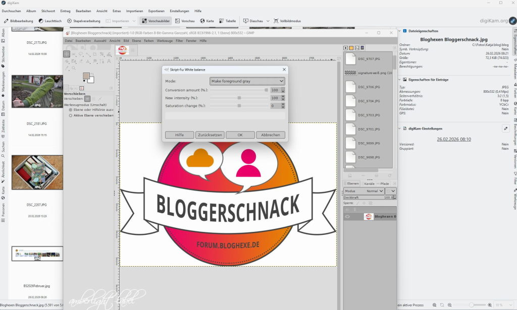 Bei der Gemeinschaftsaktion im Bloggerforum der Bloghexe wird im April danach gefragt, mit welcher Software und welchen Tools gebloggt wird. Ich selbst brauche zum bloggen exakt drei Programme: digiKam, ein open-source Bildverwaltungsprogramm, Gimp, ein freies Bildbearbeitungsprogramm und natürlich WordPress.