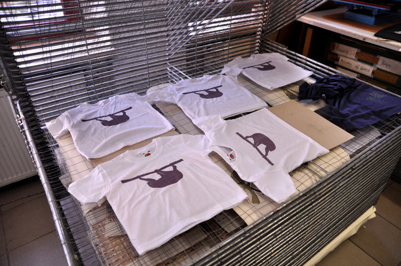 Nachdem der technischer Ablauf des Siebdrucks klar war, habe ich mich als 2. Motiv an einen zweifarbigen Siebdruck mit Faultiermotiv gewagt ... und mich spätestens dabei mit dem Siebdruckvirus infiziert. Bedruckt habe ich Kinder-T-Shirts mit den Farben Aubergine und...