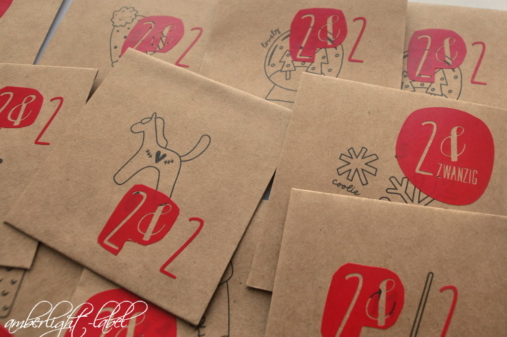 Wer dieses Jahr hier nicht vorbeischaut, wird wahrscheinlich Probleme haben, überhaupt zu erkennen, womit ich mein Tütchen gefüllt habe. Die Verpackungen sind – wer hat’s erkannt? – die weihnachtlichen Tütchen vom Laleoup-Adventskalender 2024, die ich glücklicherweise aufgehoben habe. Überraschend viele Probleme hatte ich bei der Plotterzahl von Din.din handmade, deren Shop es inzwischen auch schon wieder nicht mehr zu geben scheint. Die Zwanzig als Zahlwort war einfach so winzig klein, dass ich die Buchstaben nur in einigen wenigen Fällen entgittert bekommen habe und bei den meisten auf eine wilde Mischung aus zwei Zweien ausgewichen bin. Ich hoffe es war zu erkennen, dass das die 22 sein sollte ….