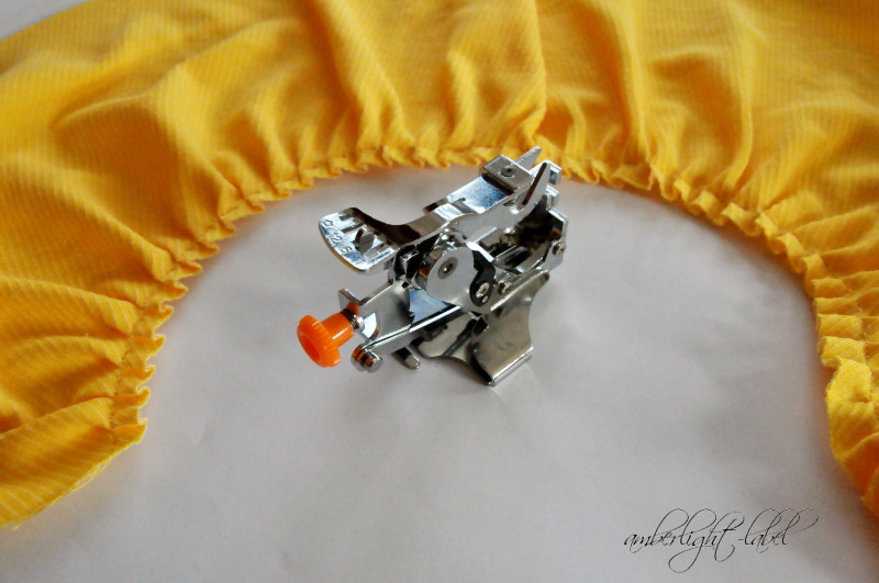 Richtig zufrieden bin ich dafür diesmal mit den Falten des Rockes, denn ich habe nun endlich verstanden, dass der Ruffler* nur mit geringer Nähgeschwindigkeit arbeitet. Ich gehöre ja eher zu den rasanten Nähern und lasse das Maschinchen* auf höchsten Touren rattern. Das verträgt der Faltenleger* aber gar nicht, denn dabei sind mir schon mehrfach die Nadel um die Ohren geflogen. Langsam genäht, wird’s aber beeindruckend gleichmäßig.