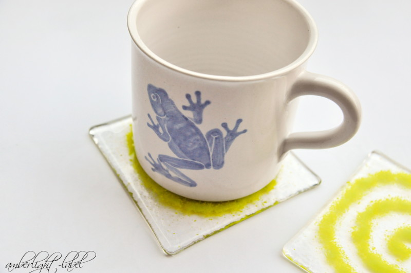 Die fertigen Glasuntersetzer machen sich jedenfalls nicht nur unter der Lieblingsteetasse sondern auch unter den Rosen und neben dem Geburtstagskuchen des Mannes für mich sehr gut.