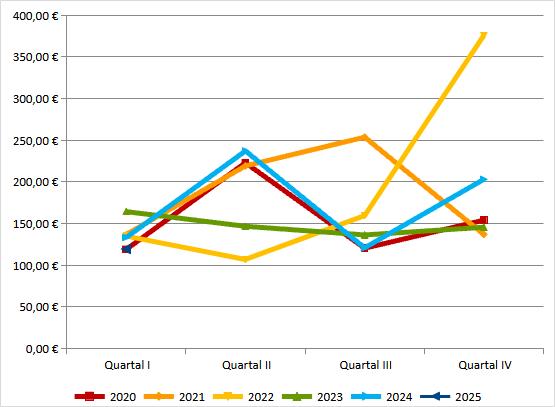 Nach dem nun endlich der Jahresrückblick zu den Blogeinnahmen 2024 geschrieben ist, bin ich motiviert, bei diesem Thema wieder Ordnung zu schaffen. Eigentlich braucht es ja nur noch vier Quartalsberichte, um wieder ganz aktuell zu sein. Dringend aufräumen müsste ich auch endlich mal bei den für die Käufer kostenfreien Unterstützungsmöglichkeiten, die ich nun via “Stoffkaufschwein“- Button wieder direkt unter den Blogbeiträgen habe. Dort gibt es leider – von Makerist über Jako-o und Waschbär – ziemlich viele Partnerprogramme, die nicht mehr existieren, weil die Unternehmen insolvent sind. Wenn ich dort endlich mal aufräume, wird nicht mehr viel übrig bleiben, da ich hier weiterhin nur empfehle, was uns selbst überzeugt (hat). Aber zurück zu den ersten Quartalseinnahmen 2025. Auch dort sieht man, dass es nur noch wenige stabile Einnahmequellen gibt und ich auch dort dringend mal aktualisieren müsste. 2025 konnte ich aber immerhin noch mit 119,24 € starten, lag damit aber niedriger als in den vier Jahren zuvor.