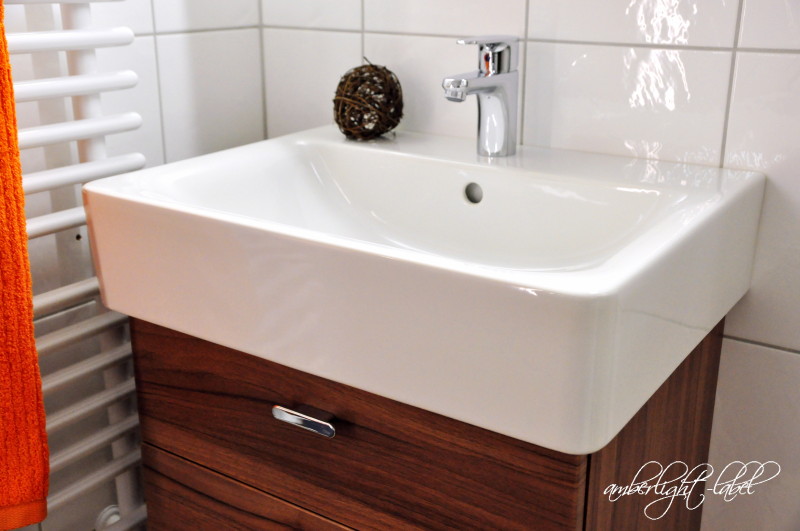 Meine Erkenntnis zum Waschbecken war, dass auf die Seifenmacher*, deren handmade Produkte ich so mag, eine schwere Zeit zukommt, denn der moderne Waschtisch hat keine vertiefte Seifenablage-Fläche mehr. Die Industrie geht davon aus, dass man entweder die schnöde Flüssigseife aus der Plastikverpackung verwendet oder in einen halbwegs ansehnlichen Seifenspender* investiert. Wenn ich es zeitlich schaffe, werde ich jedenfalls am Sonntag beim Handmade-Marktschon mal Ausschau nach einer brauchbaren Seifenschale halten, die bei so einem Waschbecken funktioniert und keine Badüberschwemmung anrichtet.