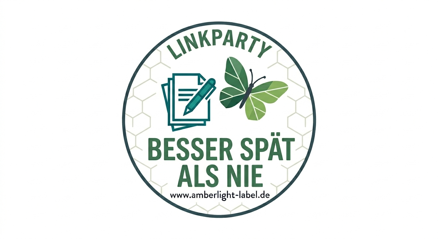 Im Bloggerschnack aus dem Bloggerforum der Bloghexe zum Thema “KI und das Bloggen” war bereits mein Logo für die die neue Linkparty “Besser spät als nie” zu sehen, wobei ich dort noch den Gedankenfehler hatte, es als Blogparade zu bezeichnen. Auch das lässt sich ja aber via Prompt in Sekunden anpassen. Tatsächlich möchte ich keine weitere Blogparade starten und auf Teilnehmer hoffen, sondern eine Linkparty etablieren, die hier so lange laufen wird, wie es (für mich) passt.