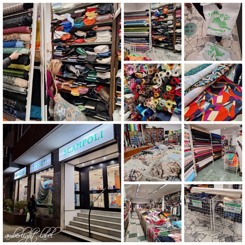 Auf zwei Etagen gab es wirklich sehr viel Stoff und auch Wolle, wobei wir im ebenerdigen Ladenbereich uns erstmal die “All’Etto” Bezeichnung erklären lassen mussten. Hinter Etto stehen 100 Gramm und der Stoff wird dabei tatsächlich nach Gewicht abgewogen, kann aber auch jederzeit kleiner geschnitten werden. Die Preisspanne zwischen wenigen Euro und dann doch hohen Beträgen war dabei erstaunlich breit. Im Untergeschoss gab es ballenweise Stoffe und an jeder Stelle große assolutamente (!) Fotografier-Verbotsschilder mit Piktogramm, damit es auch jeder versteht. Beim tatsächlich Stoffkauf fragte ich dann vorsichtig nach und durfte dann doch knipsen. Etwas Überwindung kosten mich solche darf-ich-doch-Fragen dann ja doch.