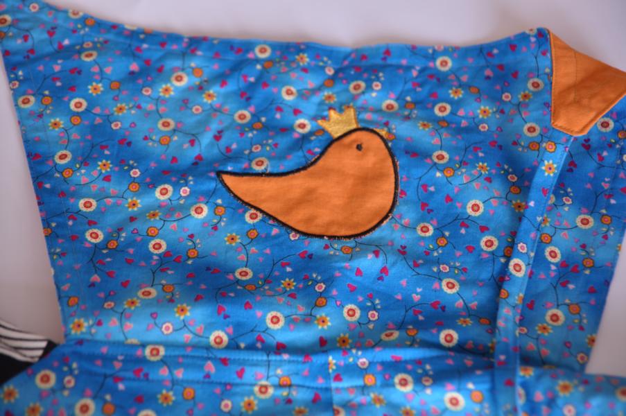 Ich habe es schon wieder getan, denn das Kind ist seit dem ersten Mei Taikräftig gewachsen. Im Eulen-Mei-Tai wurde das Kind fast jeden Tag getragen, deshalb musste schnell ein neuer her. Geholfen hat mir wieder das E-Book Mei Tai* von Kleinigkeit. Der Stoff “Blumenranke blau” ist von Marions Wunderland und die Stickdatei mit dem Applikations-Vögelchen ein Freebie.