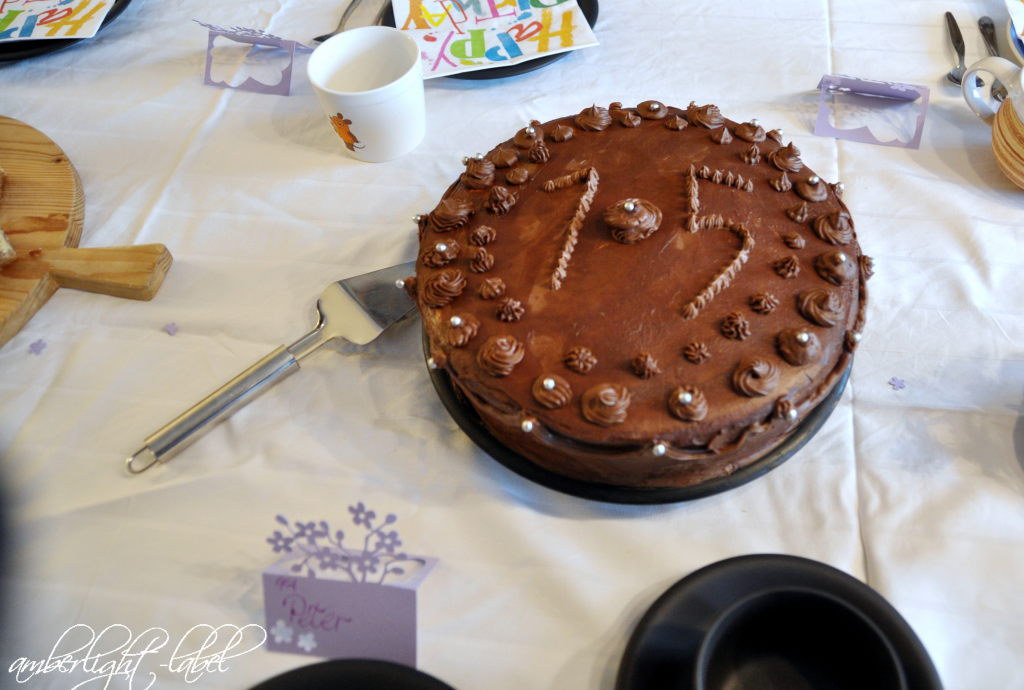 Die Blümchentischkärtchen haben kaum Verschnitt, weil man die ausgeschnittenen Blümchen gleich noch als Streudeko verwenden kann. Mein Mann zauberte mit der Tochter einen wunderbare Sachertorte, mit der er zeigen wollte, dass das kurz vorher vor einer Wienerin zum verkosten mitgebrachtes Stück Sachertorte, welches bei der Kolleginenverabschiedung übrig geblieben war, nicht so gut war, wie sein Backwerk. Die Wiener Bäckerin war bei unserer Familienfeier zwar nicht mit dabei, aber die anwesenden Gäste alle sehr begeistert.