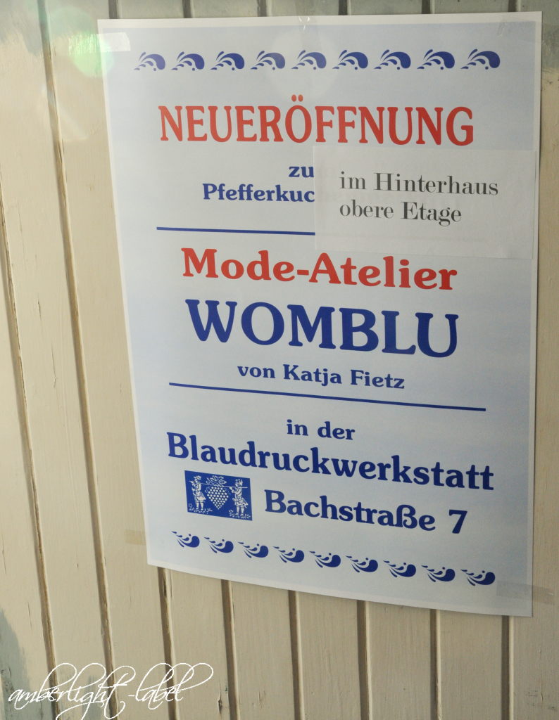 Bevor es mit den Kindern zu den Pfefferkuchen weiterging, konnte ich noch bei WOMBLU vorbeischauen, die im Herbst 2024 in Pulsnitz neu eröffnete. Ich war sehr beeindruckt, denn bislang habe ich die Blaudruckstoffe fast nur bei Taschen und Accessoires verarbeitet gesehen. Blaudruck als Kleidungsmuster bei der Indigo-Kollektion von Katja Fietz, die hinter WOMBLU steht, ist großartig.
