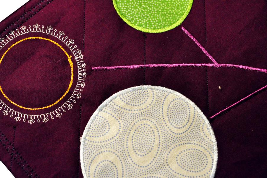 Tischsets habe ich noch nie genäht, da mir die Briefecken ein noch nicht überwundenes Nähmysterium zu sein schienen. In der Stichhatte ich aber ein Platzset gesehen, dass mich genug inspirierte. Ein Geburtstagsgeschenk wurde ohnehin gebraucht und der Kreisnäherkonnte dafür auch wieder zum Einsatz kommen. Ich mag das Ding. Vom MyZickzackkam der Hinweis, dass man damit ja auch wie bei Applikationen mit der Stickmaschine Stoffe applizieren kann, was ich nun endlich mal ausprobiert habe.