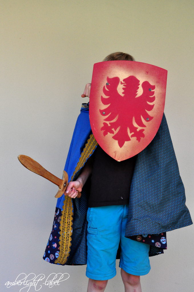 Letzte Woche habe ich den Webband-Kauf für die neue Pfadfinderleidenschaft des mittleren Kindes hier gezeigt. Nach nur sehr wenigen Gruppenstunden mit dem noch relativ neu gegründeten Stamm verkündete der Sohn, dass er auf jeden Fall mit ins Landessommerlager fahren wollte. Wir meldeten ihn an und mitten im Sommerurlaubsvorchaos, den wohl jede Familie mit mehreren Kindern kennt, kam die Info, dass der Pfadfinder dort mittelalterlich verkleidet erscheinen sollte. Sogar links zu Pinterest-Moodboards wurden verschickt. Als Hobbynäherin da nur ein Betttuch umzuknüpfen, kam nicht in Frage.