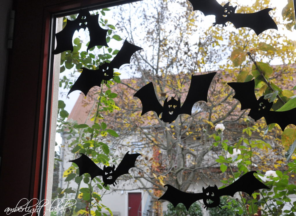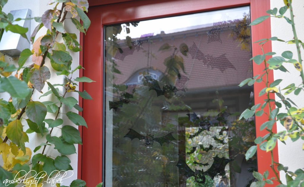 Von außen ist es allerdings sogar schlechter, als bei der Papiervariante, da doch kleine Lufteinschlüsse sichtbar sind und es nicht so ganz tiefschwarz ist. Glücklicherweise lassen sich die Folienfledermäuse ganz einfach wieder abziehen und kommen ganz bestimmt auch dieses Jahr wieder zum Einsatz.