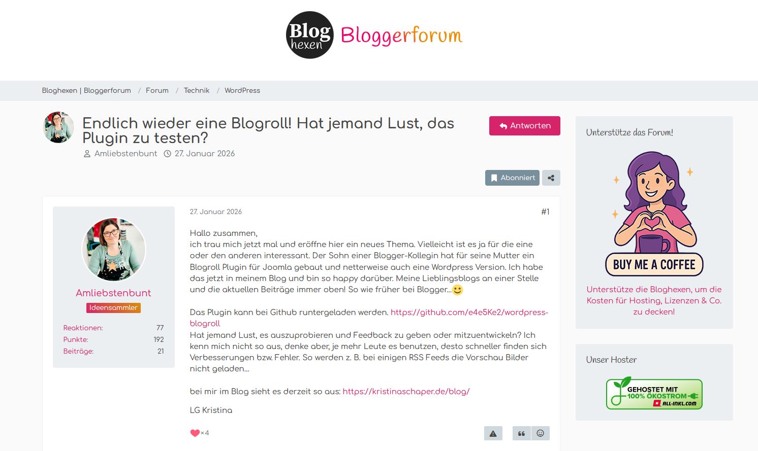 Screenshot aus dem Bloggerforum